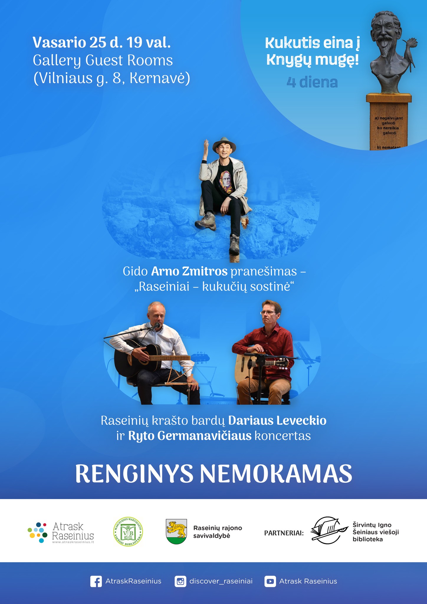 Kernavėje žygeivių jau laukė susirinkę žmonės ir skanus maistas. Susirinkusieji klausėsi A. Zmitros pranešimo „Raseiniai – Kukučių sostinė“ ir mėgavosi raseiniškių bardų D. Leveckio ir R. Germanavičiaus koncertu. Šiandien žygeiviai keliauja toliau! Laukia maršrutas nuo Kernavės archeologinės vietovės muziejaus iki Vilniaus televizijos bokšto!