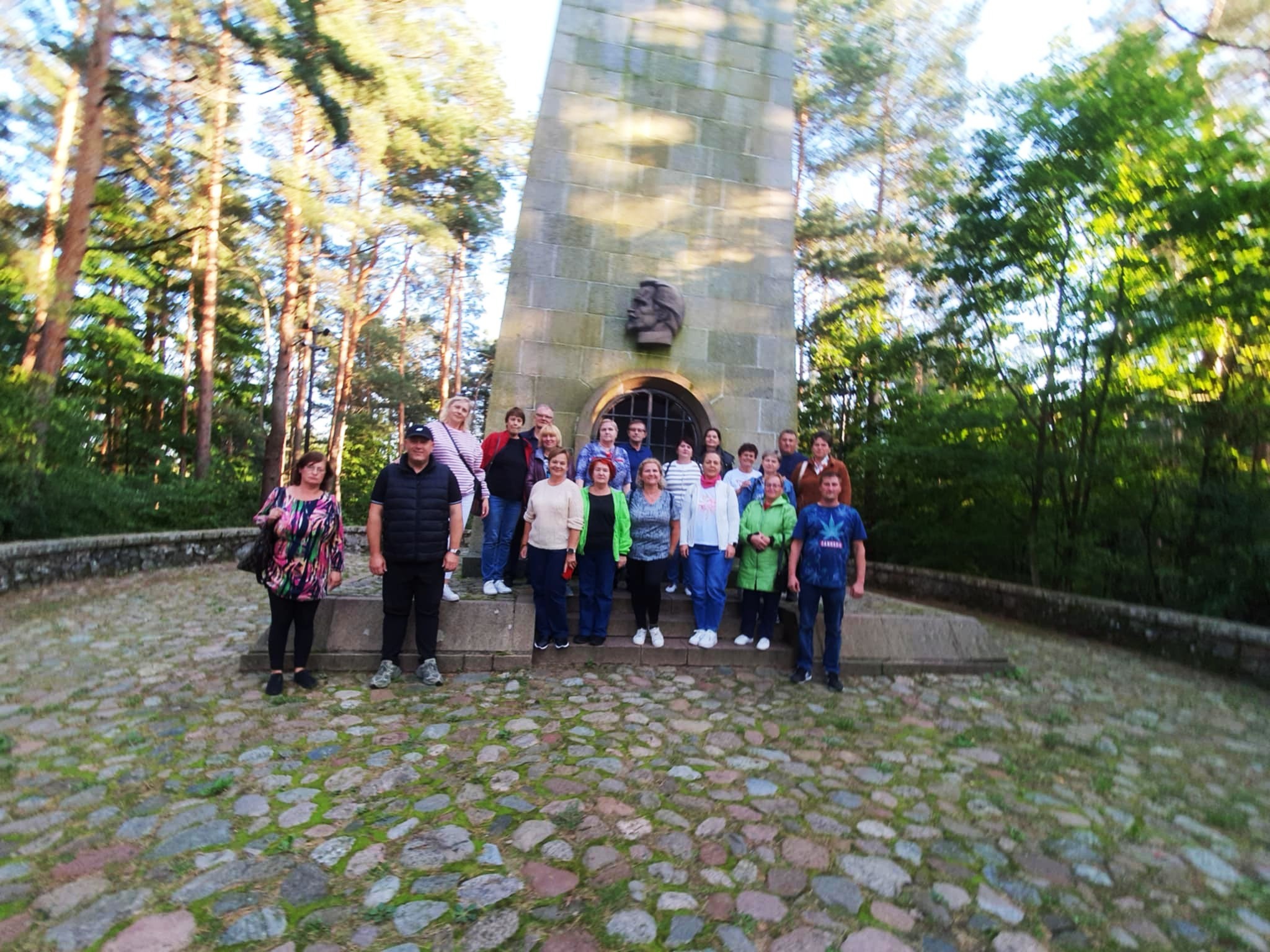 Laimės žiburį pasiekė atkakliausi.Jonas Biliūnas (1879–1907) – vienas svarbiausių XX a. pradžios lietuvių rašytojų, psichologinės ir lyrinės prozos pradininkas. Nors jo gyvenimas buvo trumpas ir paženklintas sunkios ligos (džiovos), Biliūno kūryba padarė didžiulę įtaką tolesnei lietuvių novelistikos raidai. Jis atsisakė buitiško, aprašomojo realizmo, būdingo jo pirmtakams, ir sutelkė dėmesį į žmogaus vidinį pasaulį, jo jausmus, moralinius konfliktus ir sąžinės balsą.Ši kalva senųjų anykštėnų vadinta smėliakalniais, Anykščių „Sachara”, nes buvusi plika, pustoma vėjo, be medžių. Šį kalną vienas ar su svečiais dažnai lankydavęs rašytojas Antanas Žukauskas–Vienuolis, grožėdavęsis plačiai atsiveriančiomis Anykščių apylinkėmis. Jis čia vėliau parinkęs vietą Jono Biliūno kapui. Jonas Biliūnas gimė 1879 m. Niūronių k., netoli Anykščių, mirė 1907 m. Zakopanės miestelyje, Tatrų kalnų papėdėje (dab. Lenkija). 1953 m. J. Biliūno palaikai iš Zakopanės buvo perlaidoti Anykščiuose ant šios kalvos. 1958 m. virš kapo iškilo 14 metrų aukščio architekto Vytauto Gabriūno paminklas–monumentas iš tašytų Anykščių apylinkių akmenų. To paties pavadinimo stebuklinėje pasakoje rašytojas pasakoja apie švytintį stebuklingą užrašą, pasirodžiusį ant aukšto stataus kalno viršūnės – tas, kuris užlips ant to kalno ir ranka pasieks užrašą, visus žmones padarys laimingus, o pats pavirs akmeniu.Kelionė vyko vykdant Nevyriausybinių organizacijų veiklos stiprinimo 2023–2025 metų veiksmų plano 2.1.1.1 priemonės „Stiprinti bendruomeninę veiklą savivaldybėse“ įgyvendinimo Širvintų rajono savivaldybėje Družų kaimo bendruomenės projektą „Bendraudami ir bendradarbiaudami tobulėjame“