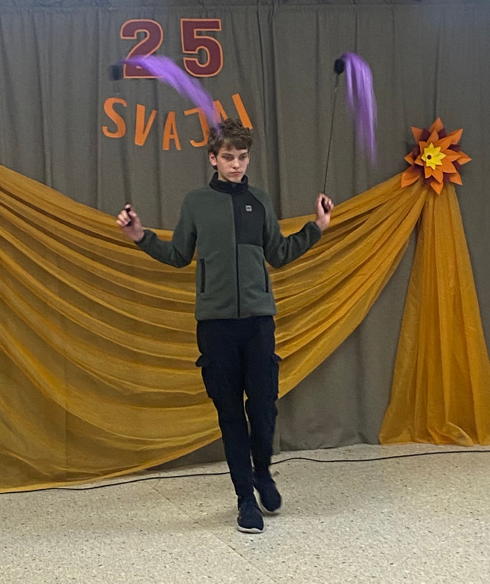 Jaunieji atlikėjai – Kristupas Burakovas (vokalas) ir Titas Bartusevičius (trimitas), Muzikinį sveikinimą dovanojo Kristina Žeromskienė, o jos anūkas Džiugas Indriulis – šokį.