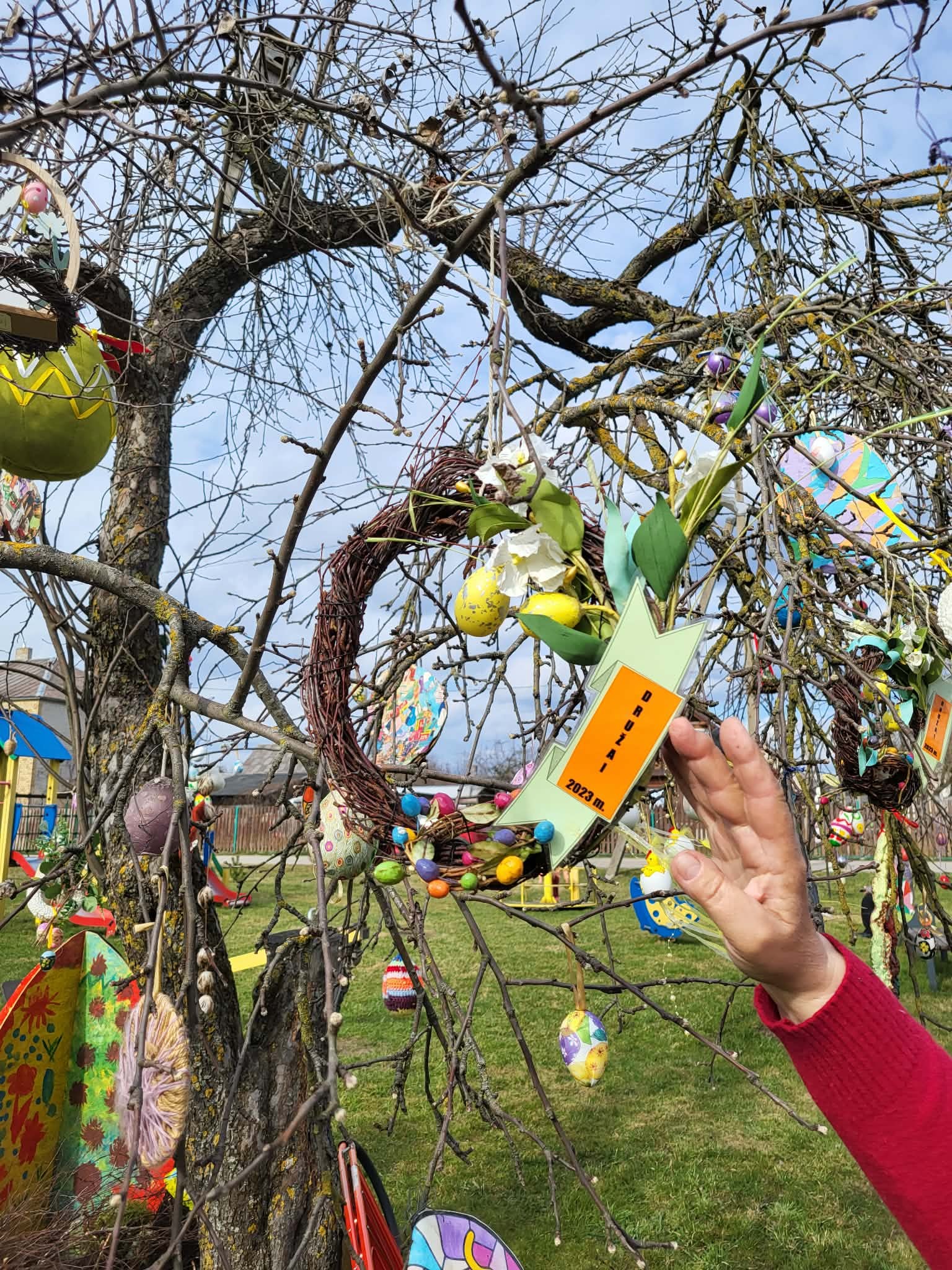 Kaip ir kasmet Družų kaimo bendruomenės velykinės kompozicijos jau puošia Velykų medį, kurį kasmet puošia Širvintų kaimo bendruomenė „Upė“.