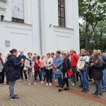 Išėjusius iš pilies mus pasitiko Biržų TVIC Turizmo ir informacijos centro) gidė, kuri papasakojo apie Biržų miestą. Apėjome Biržų pilies apsauginę zoną, praėjome pro apsauginius vartus. Pamatėmė Biržų Šv, Jono Krikštytojo bažnyčią, miesto aikštę, perejome per dirbtinį Širvenos ežerą ilgiausiu Lietuvoje pėsčiųjų tiltu per ežerą, sustojome prie Astravo dvaro, kur nusifotografavome prie žymiųjų liūtų, prie kurių fotografavosi ištisos biržiečių kartos. Deja, šiuo metu tai kopijos, o originalai sergsti Karo muziejaus prieigas.